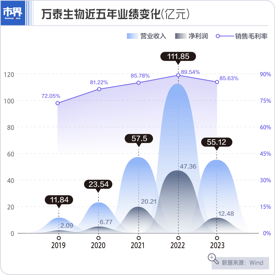 2019年至2023年的5年里,万泰生物的净利润合计88.91亿元。