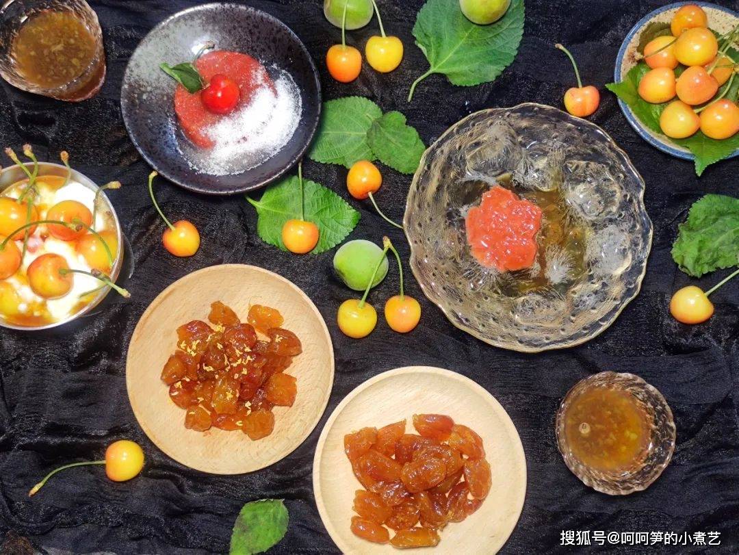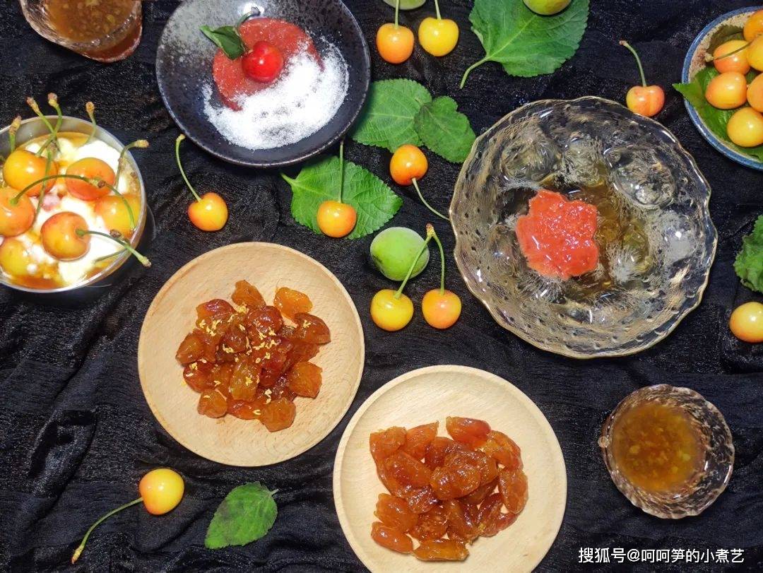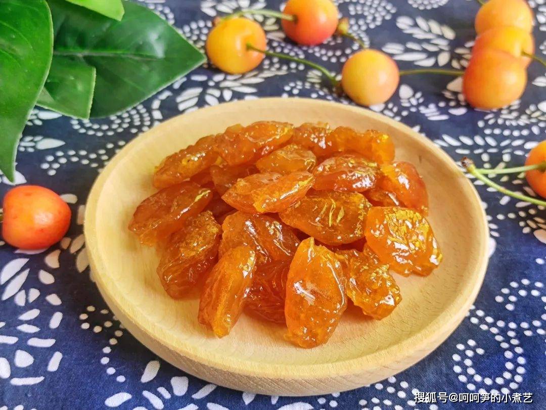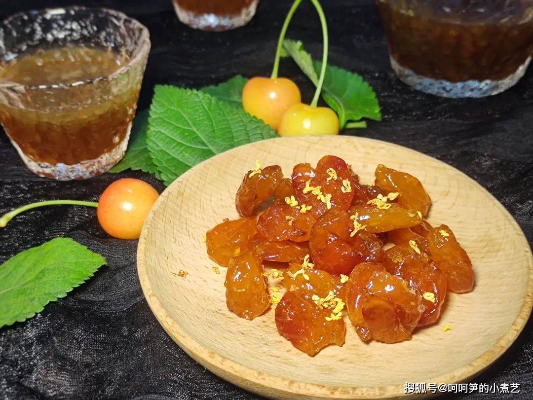 其实在《宋宴》这本书里也有『蜜煎樱桃』,樱桃去核加糖,加热至糖融化,煮至樱桃析出较多水分,捞出控干汁液。再次入锅,加糖和蜂蜜煎制20分钟,再次捞出控干水分,再加蜜煎制,重复2-3次煎至樱桃水分收干,密封保存或晒干。