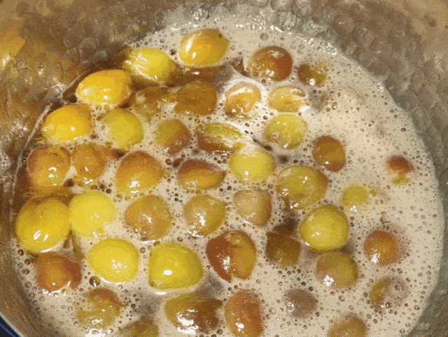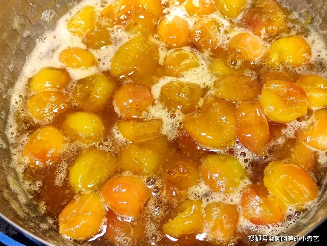 大火煮,煮到梅子完全软烂,颜色和味道全部煮到汤里。