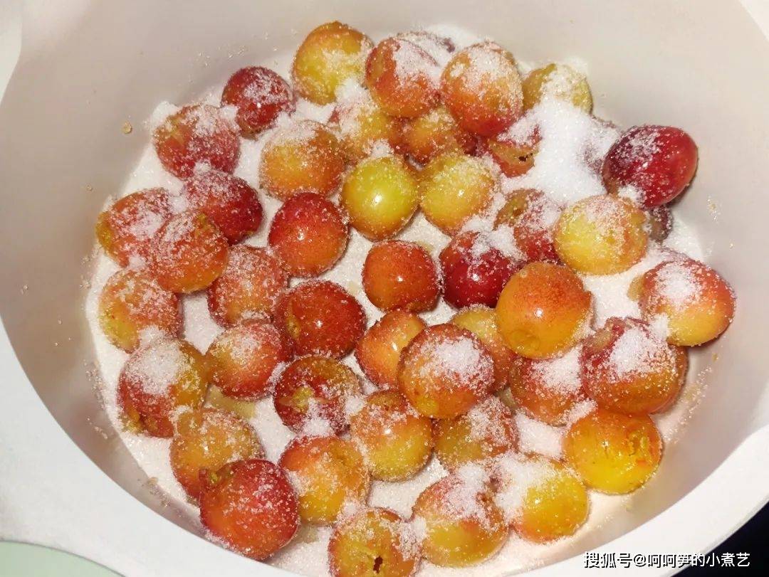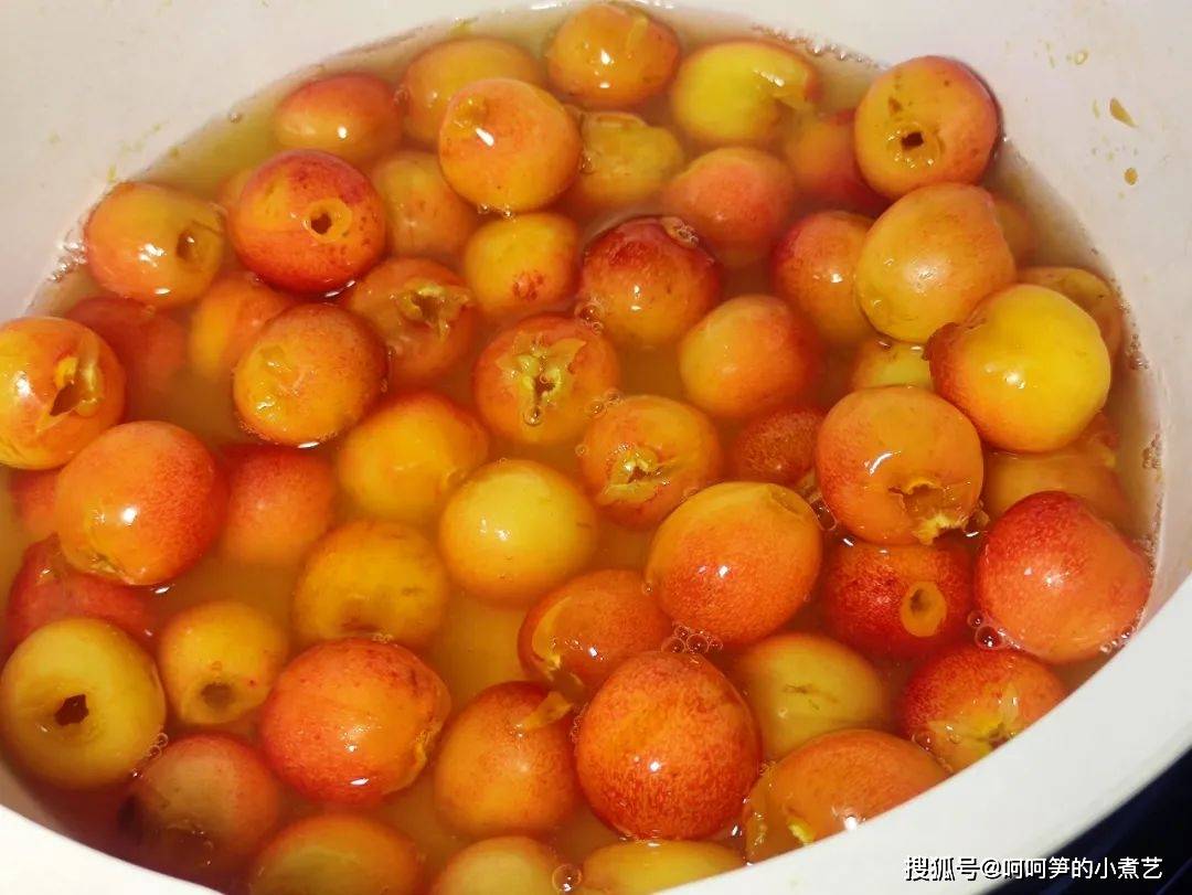 小火慢慢煮,樱桃肉会慢慢变烂。