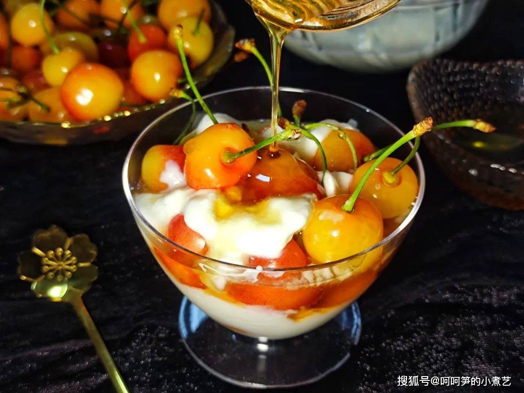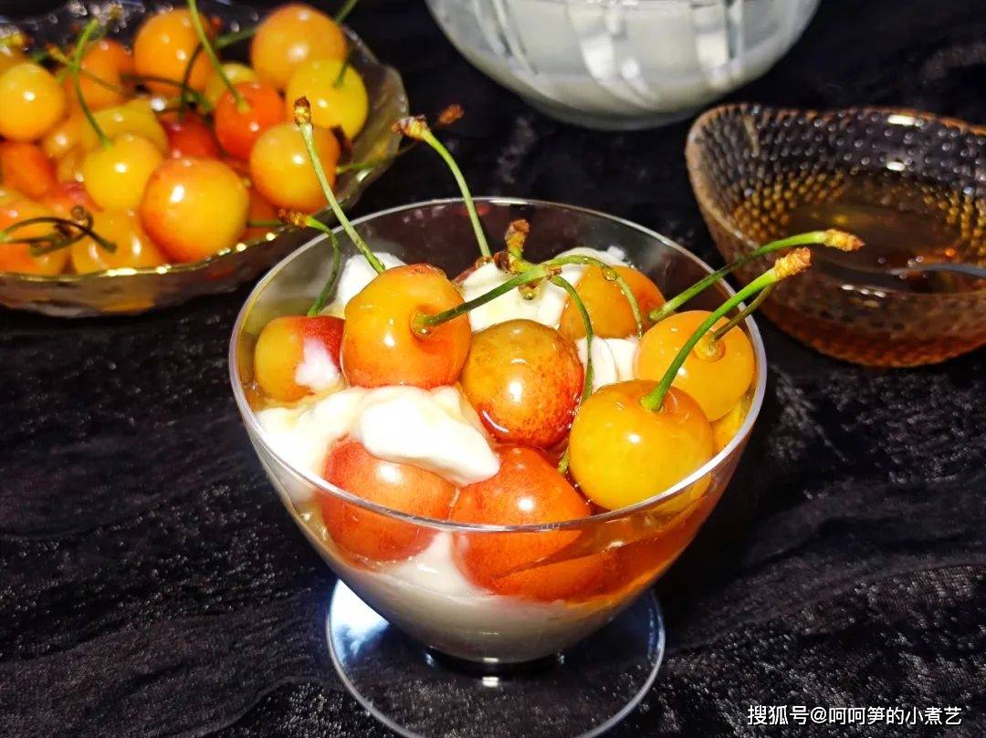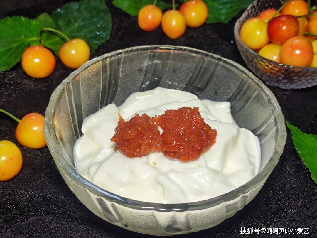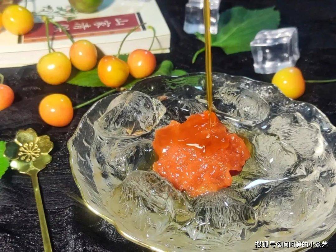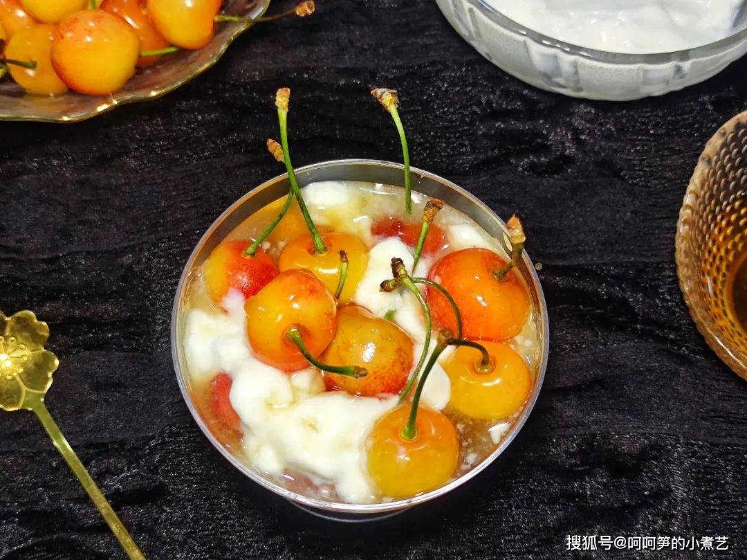 当然也有另一种吃法,综合了唐代的『酪樱桃』,将做好的樱桃煎直接放在酥酪上,可以淋上蜂蜜,也别有一番风味呢。