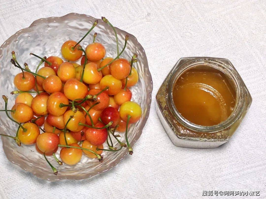 “樱桃不以多少,挟去核,银石器内,先以蜜半斤,慢火熬煎出水,控向筲箕中令干。再入蜜二斤,慢火煎,如琥珀色为度,放冷,以甆器收贮之,为佳也。”