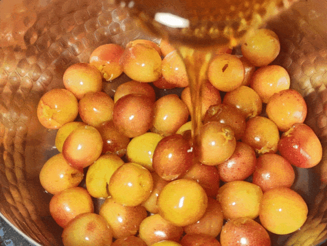 重复2-3次煎至樱桃水分收干,成琥珀色。