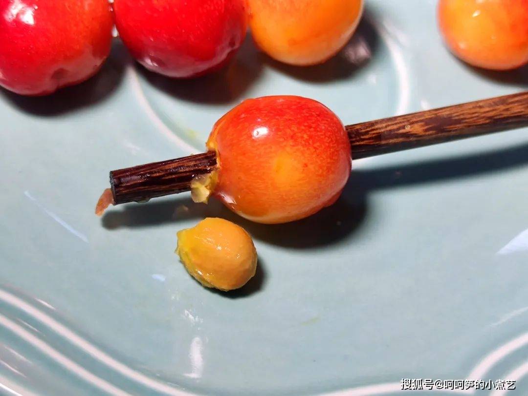 樱桃用筷子在樱桃柄处轻轻一捅就可以轻松去除果核。