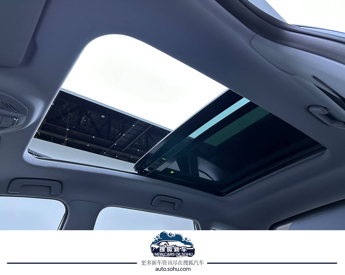同级最大面积星海全景天窗:整体尺寸为870×1362mm,采光面积达0.82m²;可开启尺寸870×603mm,面积达0.36m²。