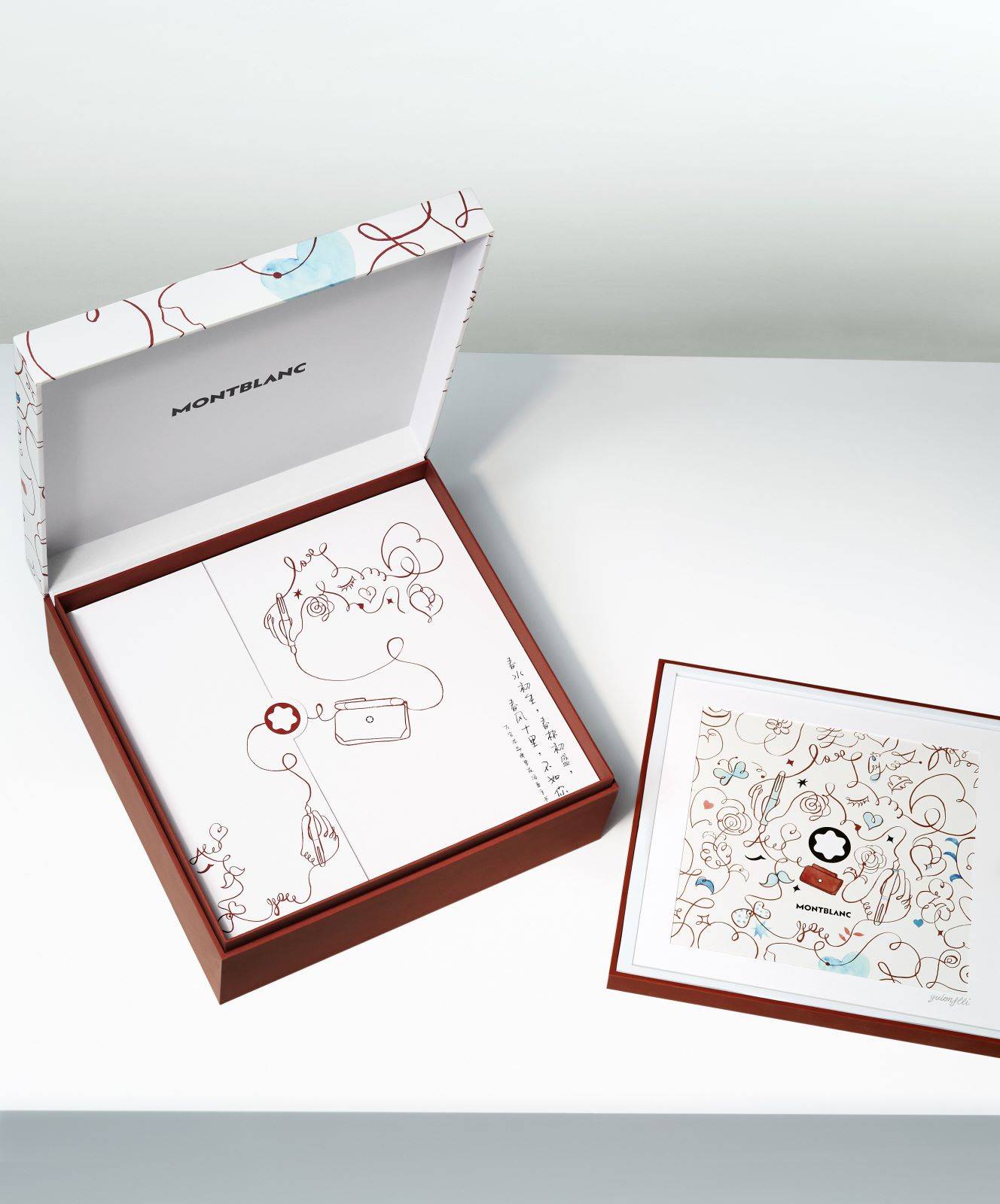 万宝龙全新七夕情意手书限量礼盒盛载着中国传统七夕典故的如意祈愿,运用象征缘分的“红线”元素,并从全新软皮系列皮具作品中汲取色彩灵感,以温润柔和的暖砖红点亮礼盒配色。