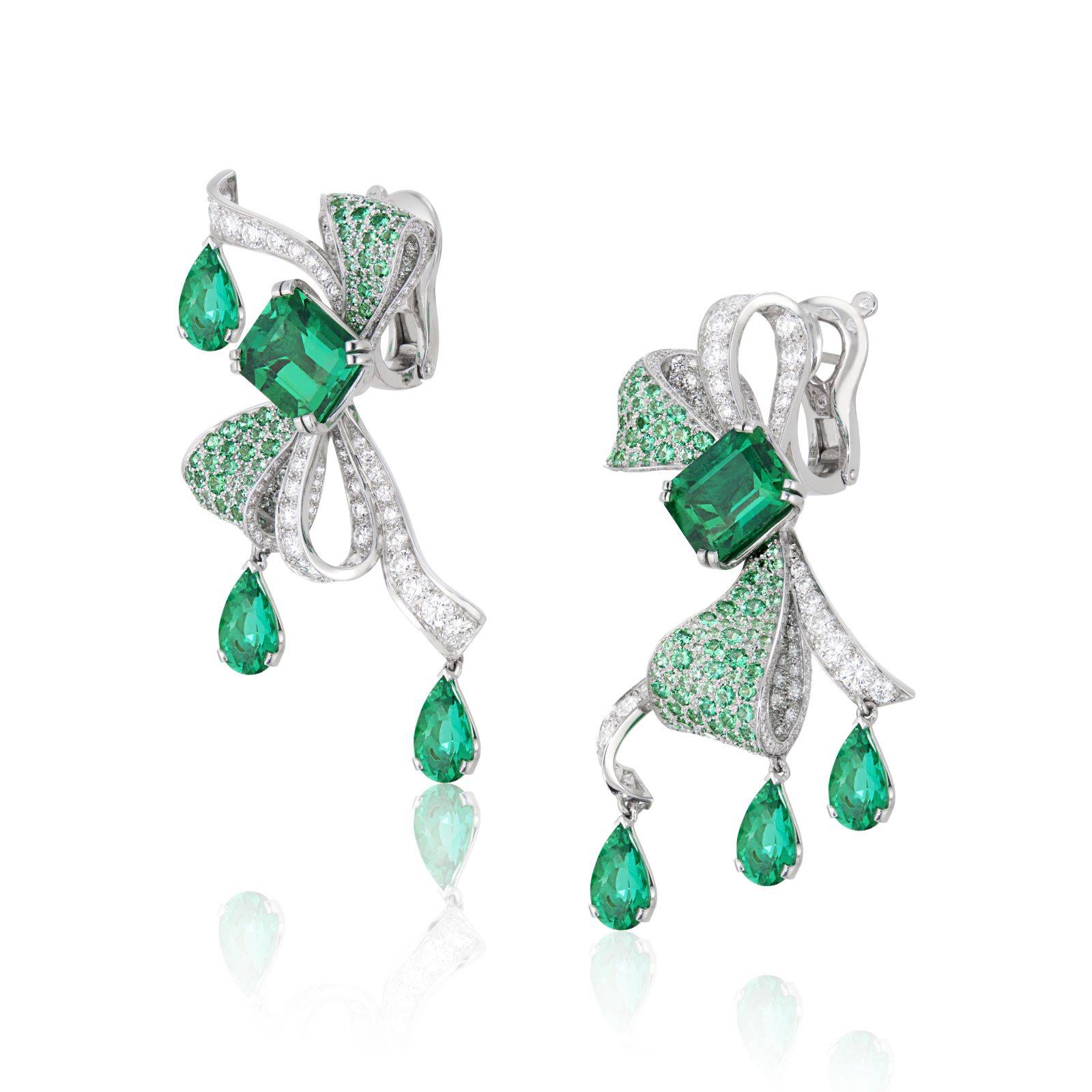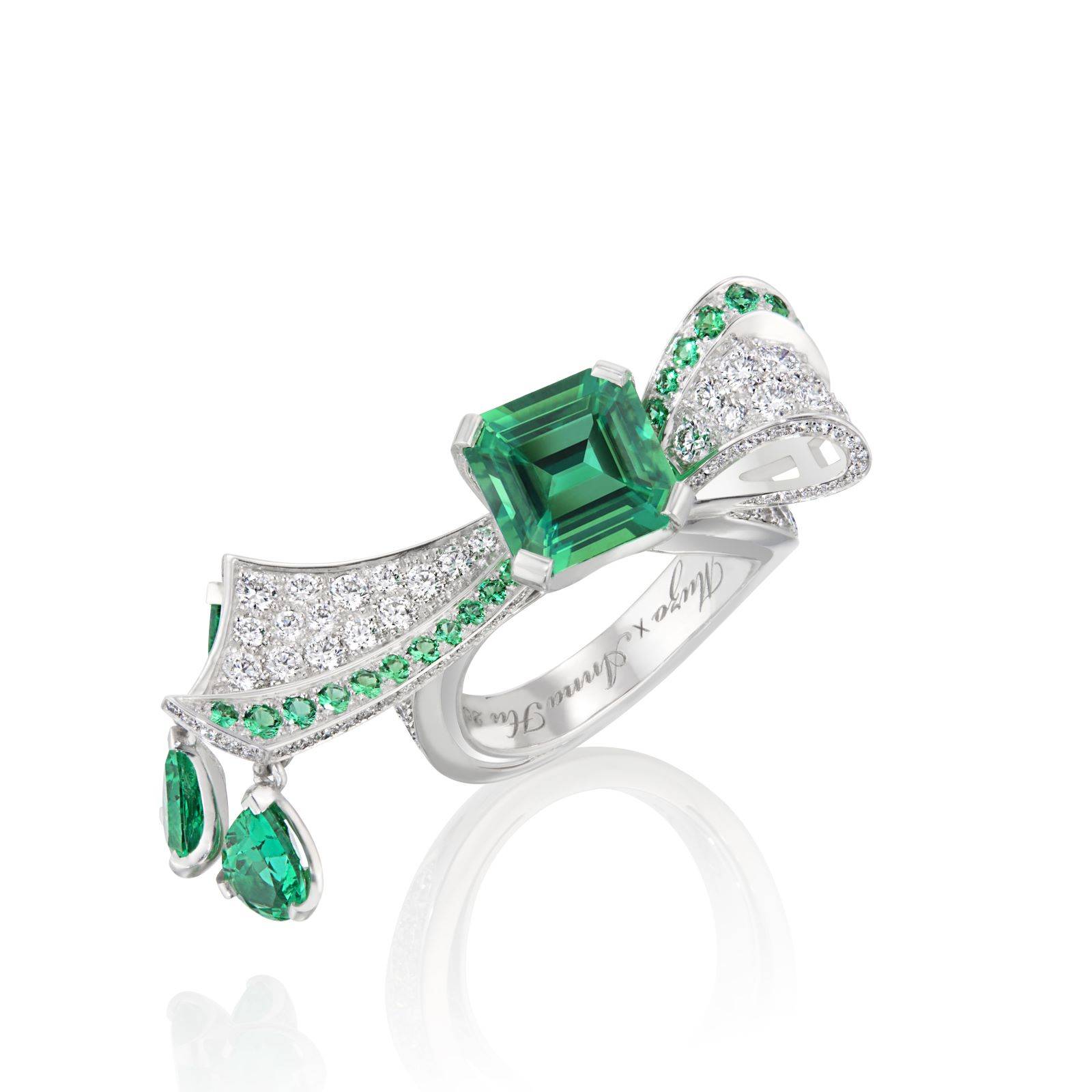 ANNA HU 高定珠宝于七夕佳节推出ANNA HU x MUZO 爱的礼赞系列祖母绿耳环及戒指,灵感源自流行于爱德华时代的蝴蝶结图案,采用总共 3 颗未经处理,拥有极高净度、令人惊叹的饱和绿色调及透视度的极致质量MUZO 祖母绿宝石,量身定制出一组充满极为女性化、充满生机且优雅的作品。