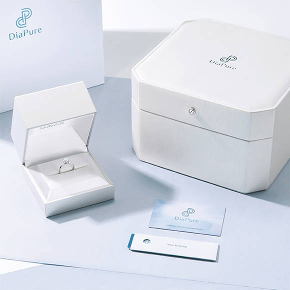“光影密语”亦备有如水般清澈的「DiaPure」以供选择,「DiaPure」只筛选“无荧光”或近乎“无荧光”的弱荧光级别钻石,配以4C标准严选把关,让钻石的光芒见证坚贞不渝的爱情,诠释至真及至纯的爱情告白。
