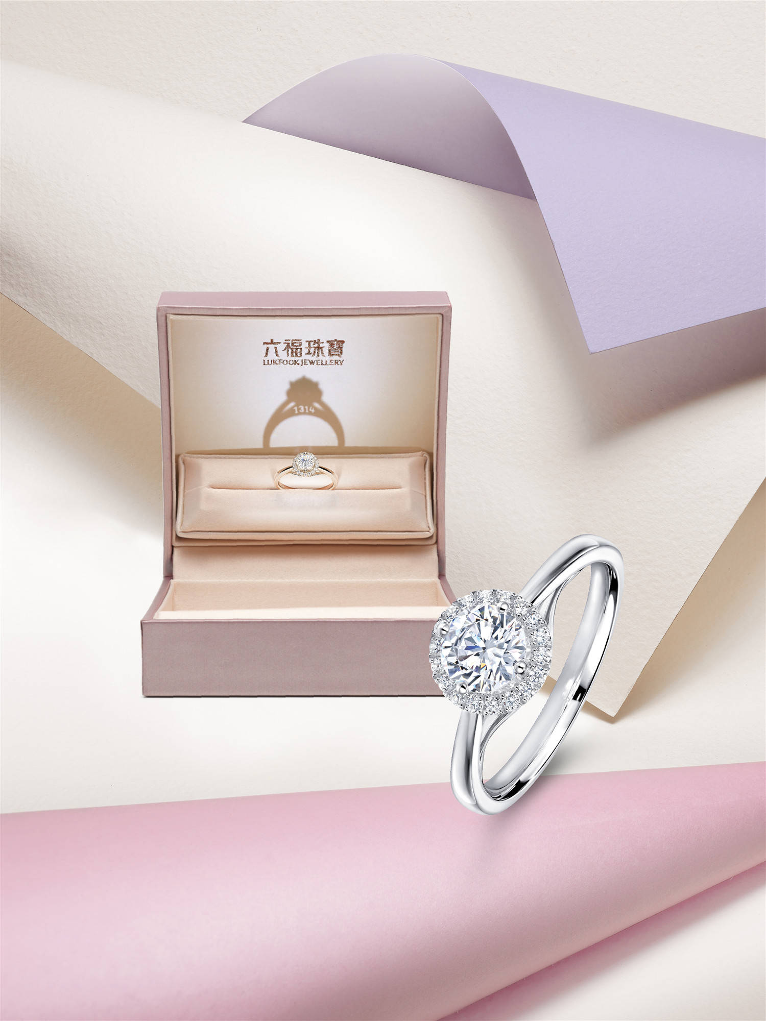 六福珠宝“光影密语”钻戒精密地计算出空间距离,在专属礼盒内运用光影效果投射出「520」、「1314」、「I♥U」或其他专属定制组合。钻戒更备有「放闪车花」工艺,将主石视觉效果倍增。