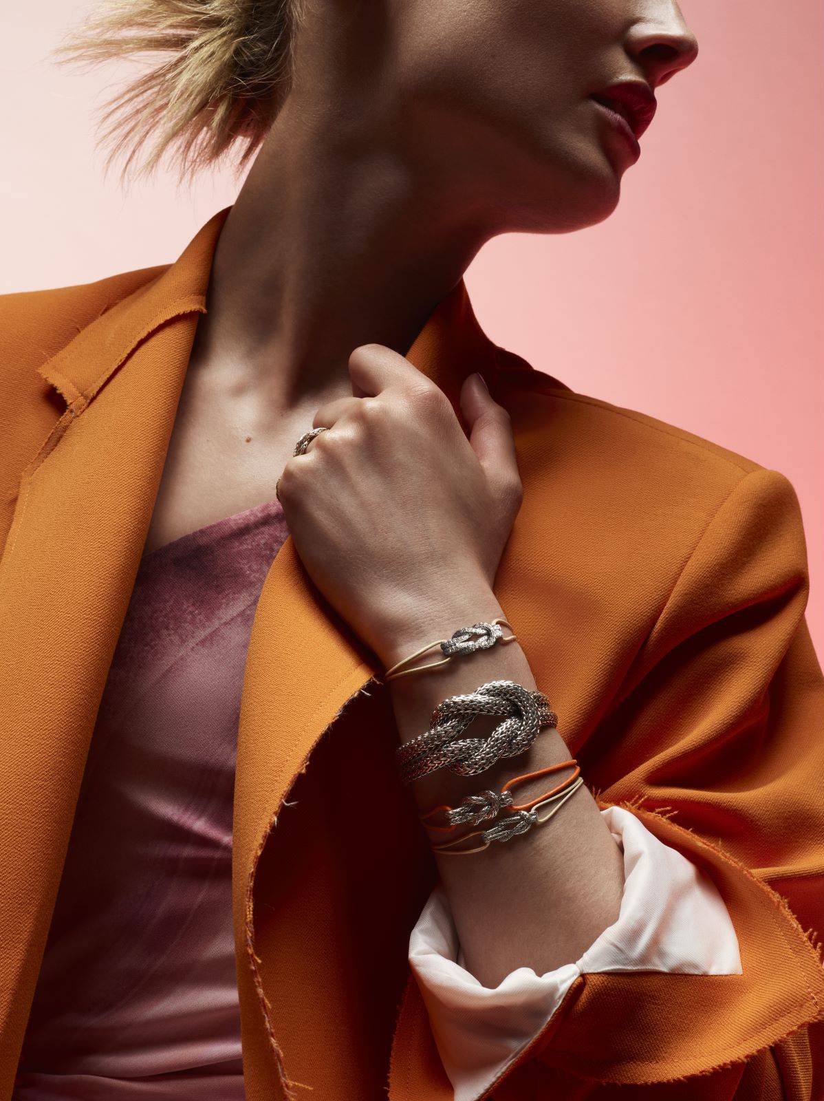 John Hardy Love Knot系列,汲取巴厘岛世代传承的编织精髓,金属链条编织紧密纹理,宛如亲密无间的灵魂伴侣。现代设计与卓越工匠编织精湛技艺相辅相成,流淌着爱的寓意与情感。