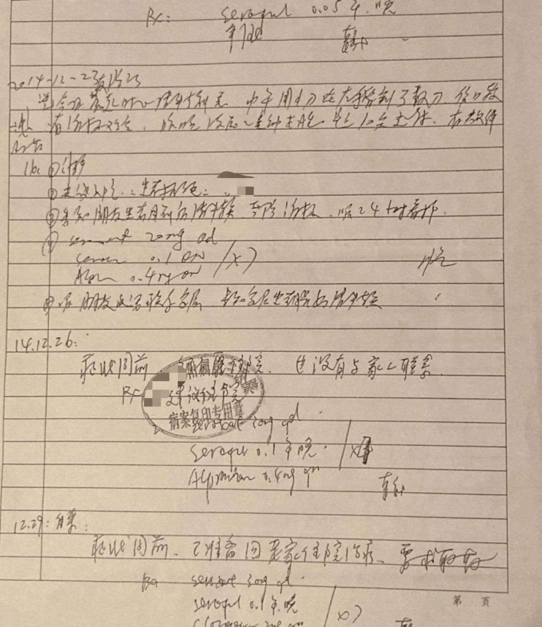 陈璐最早的抑郁症病历,时间为2014年。讲述者供图