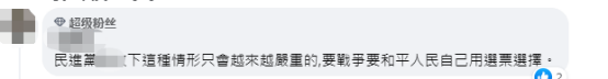 还有人称,“民进党‘执政’下这种情形只会越来越严重的,要战争要和平人民自己用选票选择。”↓