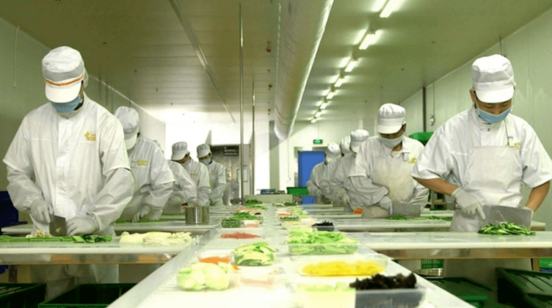 比如配类的免洗净菜,国家已经推广了十几年,所有的清洁、切分都要在流水线完成,一家合规的净菜加工车间,都会严格消毒,比起很多小馆子的操作条件,要高不少。