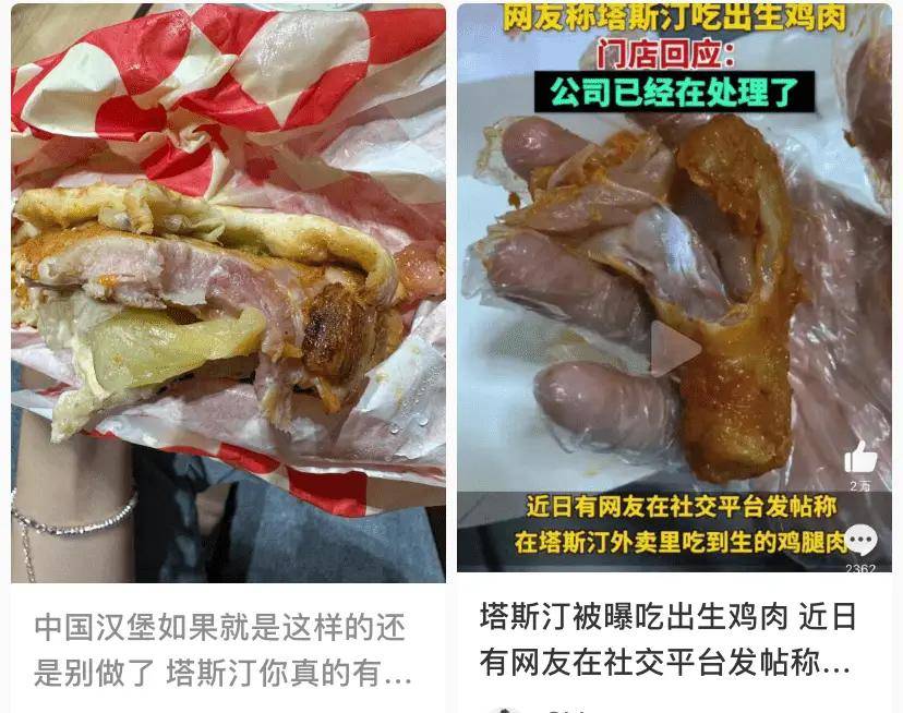 今年10月,江西一网友在社交媒体上发帖称:“塔斯汀忍你很久了”,并附上生肉的照片。该事件在短时间内迅速冲上微博热搜第一,收获了大批网友的关注。