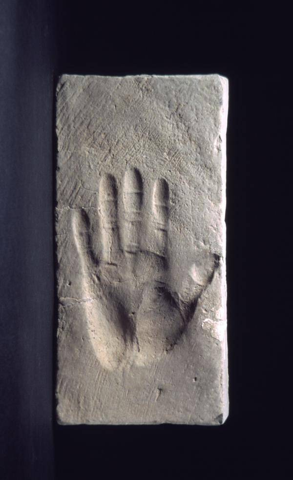 工匠手印。空心砖。东汉。陶。高33.5厘米,宽16厘米。临沂市博物馆。图片由山东博物馆及华美协进社(China Institute Gallery)提供。2005年春艺术展。