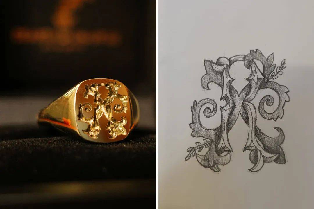 在正式雕刻前,Deakin & Francis会提前发手绘图,确认好之后再制作,我和Boy·A对于这个图案都很满意,感觉是仅此一枚的专有设计。