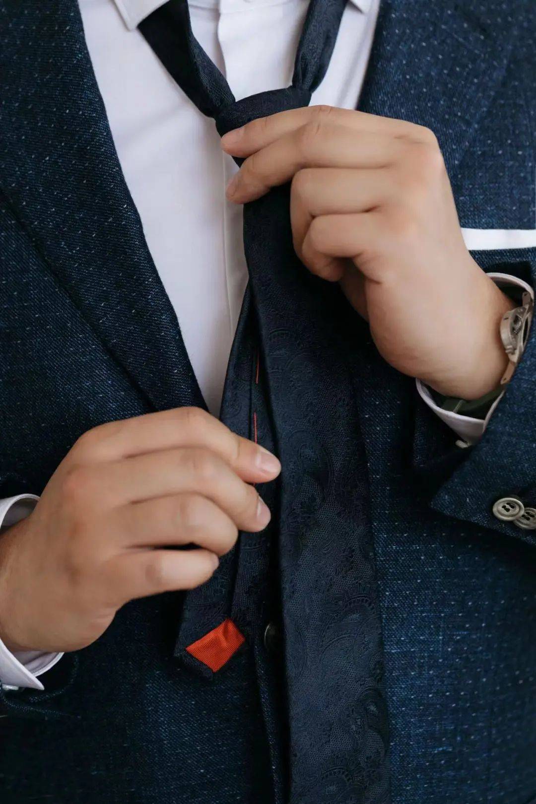 Cinabre领带最具标志性的朱砂红丝绸细节,与精致的暗纹压花搭配起来格调满分。暗纹压花看似低调,细品则流露着高级感,看上去就品位不俗。