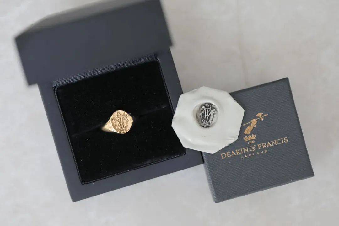 为了纪念我生二胎,我给自己和Boy A专门定制一套有纪念意义的印章戒指。品牌来自Deakin & Francis,这个始于1786年的英伦老牌,有着237年悠久历史,是英国最古老的家族珠宝商之一,致力于为各国皇室成员和名流定制珠宝配饰,做金饰本身就有着出色的经验和资质。