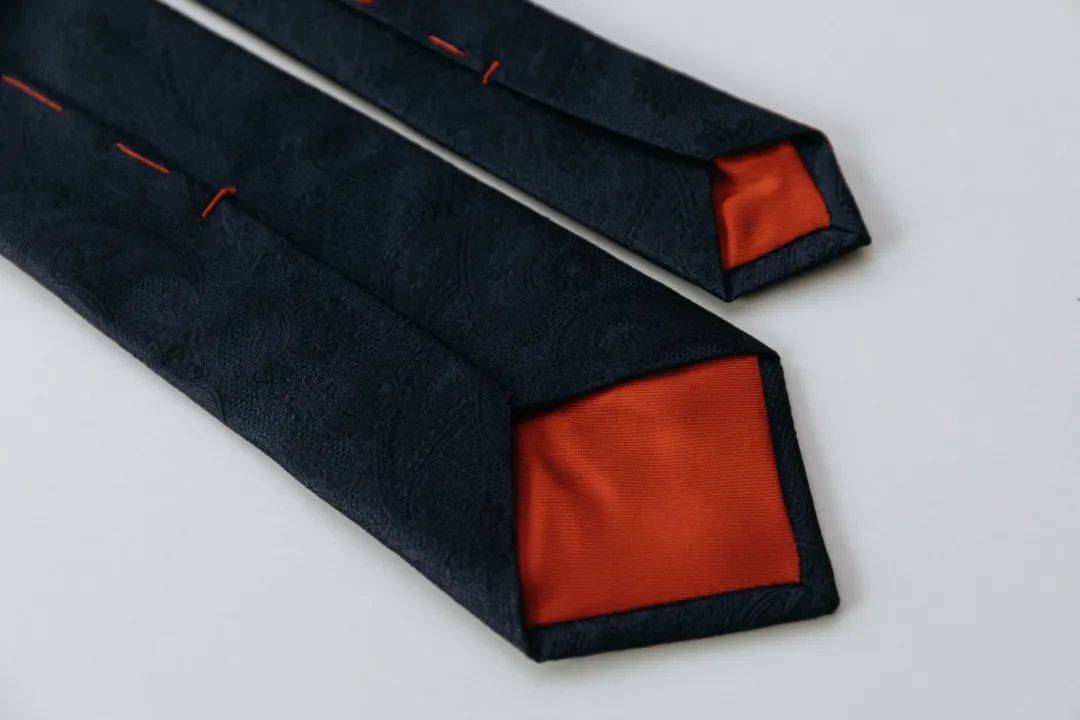 Cinabre海军蓝佩斯利真丝领带(总统系列)