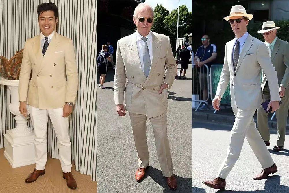 后来我们一路从瑞士辗转到法国,那时正好是我们的结婚纪念日,去之前,我就请清曳帮我定制了两套白色系情侣装。Boy A的西装参考了温网上名流的穿搭样式。