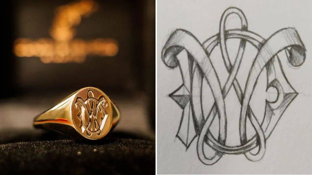 亮闪闪的金戒指质感爆棚,最特别还要数上面雕刻的印章图案,两枚戒指分别刻有我和Boy·A的名字首字母,都是提前根据我们的喜好和需求专门定制的,可以说是仅此一枚,有着与众不同、专属于我们自己的寓意和独特美感。印章戒指真的有种魔力,当我和Boy·A戴上它,也和查尔斯一样完全不想摘下来。