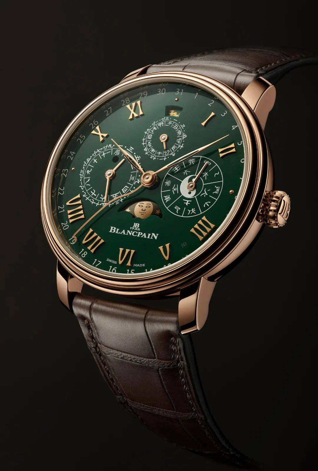 到今年,宝珀中华年历已经完成了一纪生肖轮次,又开启新的轮回。在这个甲辰龙年,推出了中华年历限量款“贵绿金龙”腕表,全球仅限量50枚。