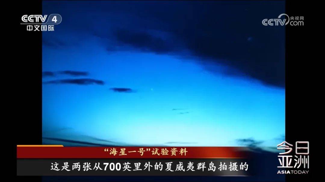 导弹升空并按照事先规划好的轨迹开始了漫长的飞行。这是两张从700英里外的夏威夷群岛拍摄的“海星一号”爆炸照亮天际的照片。