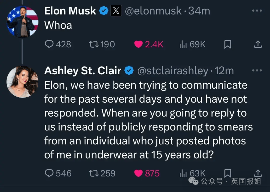 大家都觉得,这估计是两人私下里要解决问题了,就像是马斯克对待前女友格莱姆斯一样。